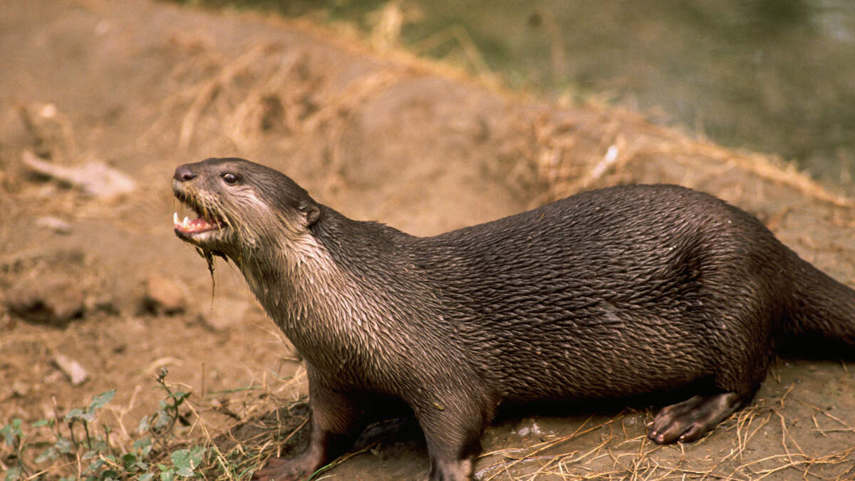 Himalayan River Otter Calls Out From Riverbank